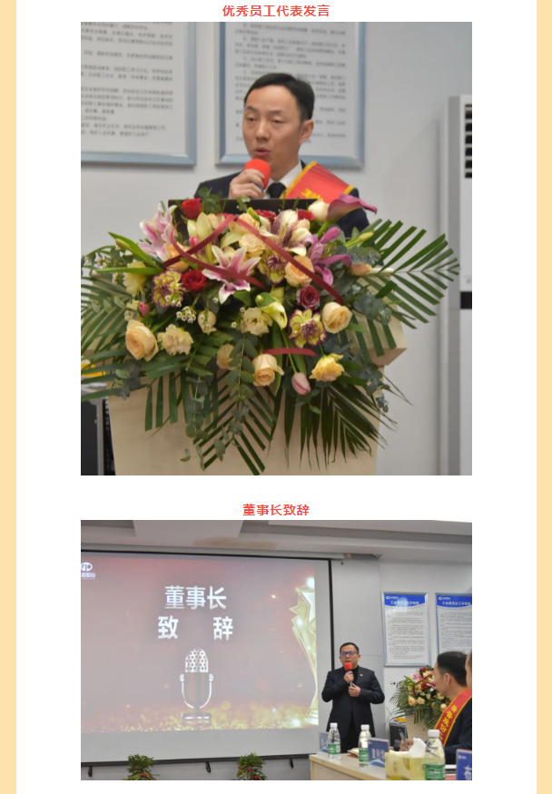 頒獎(jiǎng)典禮結(jié)束后,由公司總裁黃立志先生致辭,黃總對(duì)全體員工表達(dá)了由衷感謝,感謝各位員工在過去一年的辛勤付出,并對(duì)優(yōu)秀員工進(jìn)行了表揚(yáng),希望全體員工向優(yōu)秀員工學(xué)習(xí),最后,黃總向大家致以最誠摯的祝福,宣布晚宴正式開始!