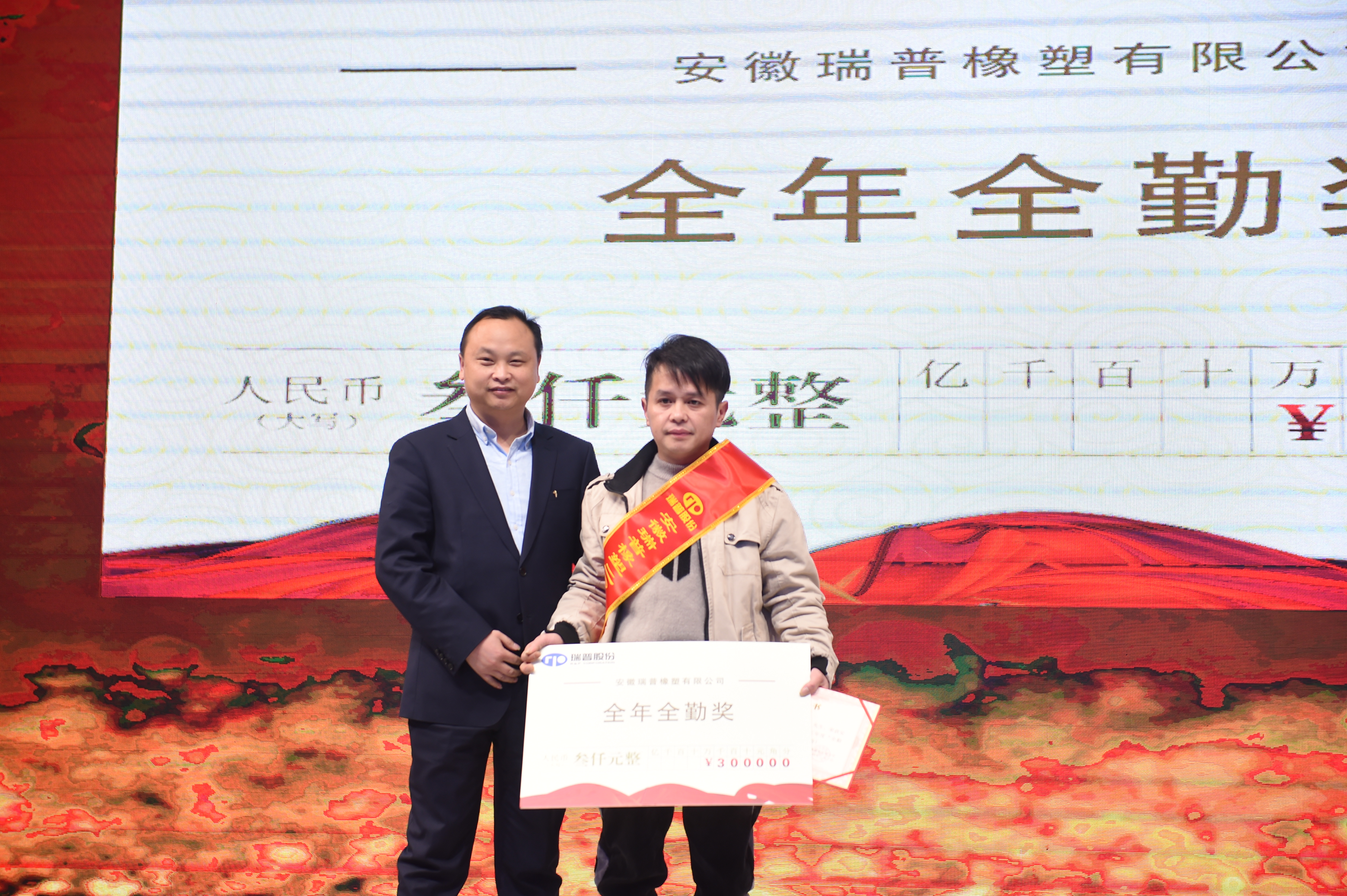 龍騰虎躍慶盛事,馬到功成事業(yè)興,安徽瑞普橡塑有限公司年會(huì)由國際貿(mào)易部經(jīng)理和人力資源部經(jīng)理擔(dān)任主持人,瑞普2024年會(huì)在倆位主持人簡單而又大氣的開場白下正式拉開序幕。